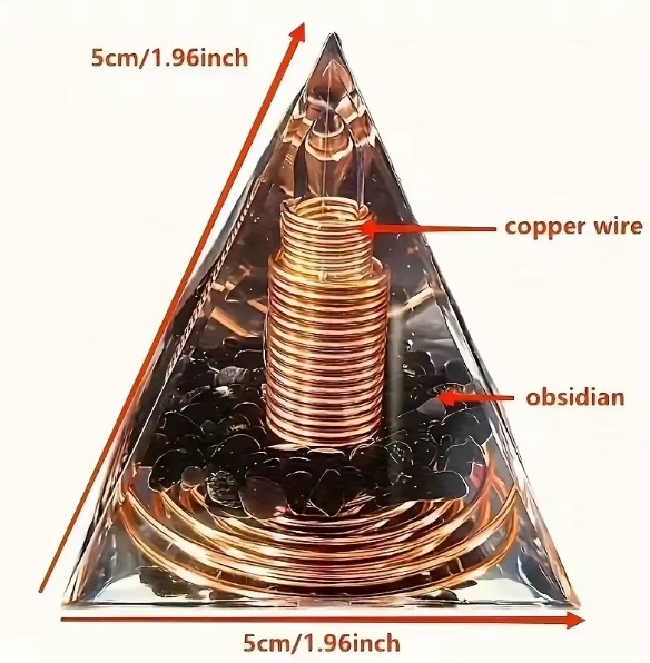 la estructura especial de las pirámides es la más estable del mundo material y la estructura divina del universo. La orgonita es una forma especial de pirámide de cristal. Es un dispositivo de conversión de energía de éter que absorbe las ondas de energía nocivas alrededor de él, y lo convierte directamente en energía beneficiosa.