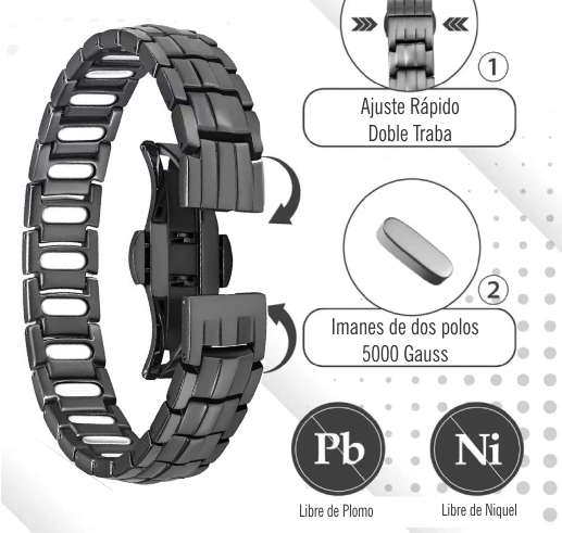 Pulsera de aleación de Titanio Regulable con Imanes de 5000 Gauss.